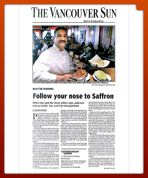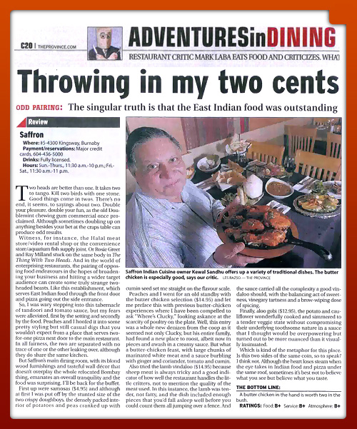 Vancouver Sun Review (January 31st, 2008) – “Follow your nose to Saffron).